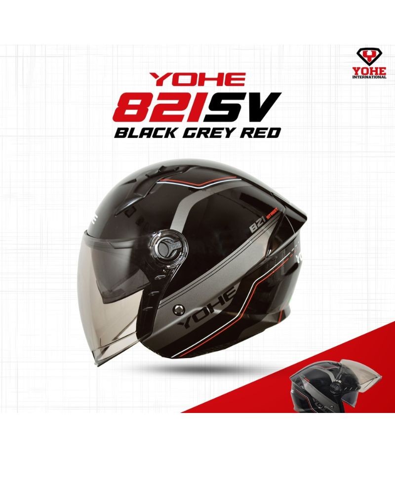 Yohe 882-B Glossy Red Color Half Face Helmet