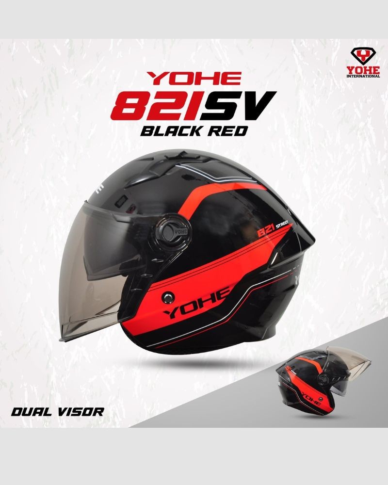 Yohe 821-SV Black Red Half Face Helmet