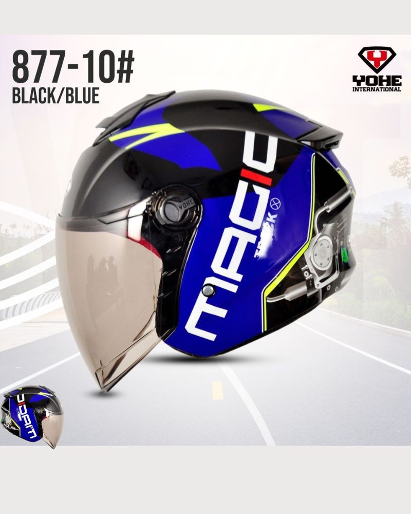 Yohe 877-11 Black Blue Color Half Face Helmet