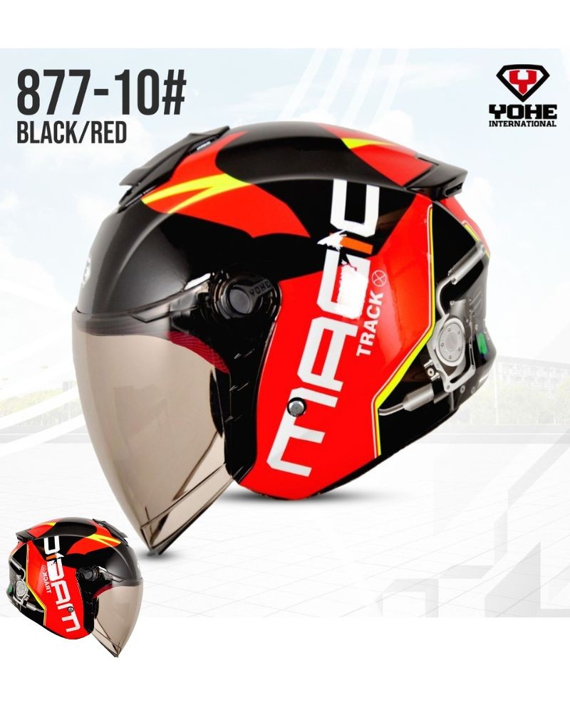 Yohe 877-12 Black Red Color Half Face Helmets