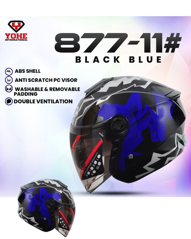 Yohe 877-10 Magic Black Blue Color Half Face Helmet