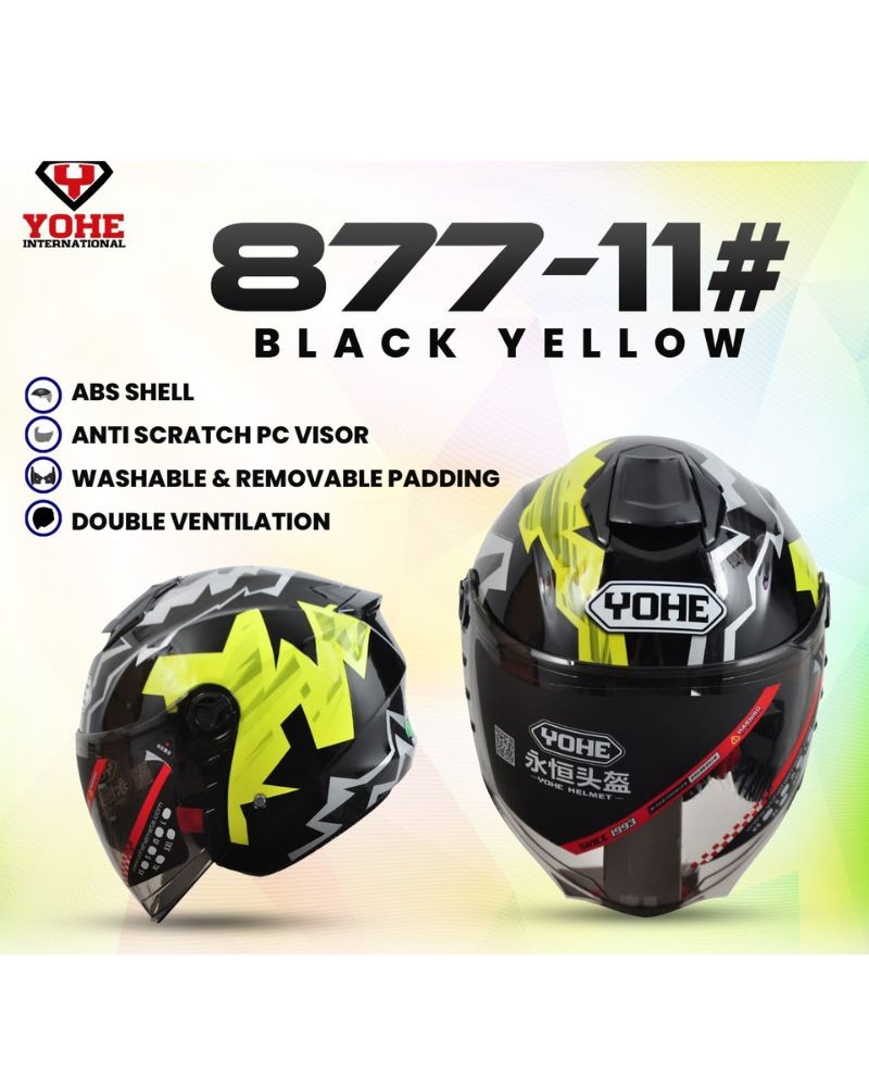 Yohe 877-10 Magic Black Yellow Color Half Face Helmet