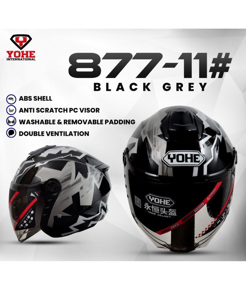 Yohe 882-03 Glossy Black Ash Color Half Face Helmet