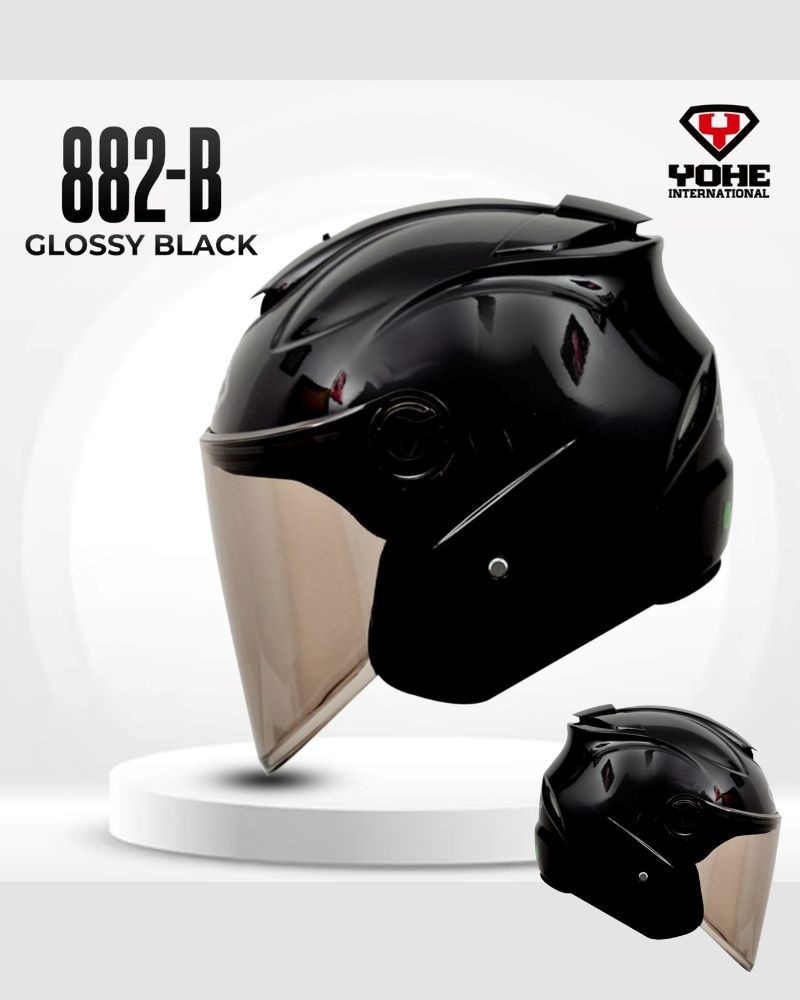 Yohe 882-03 Glossy Black Ash Color Half Face Helmet